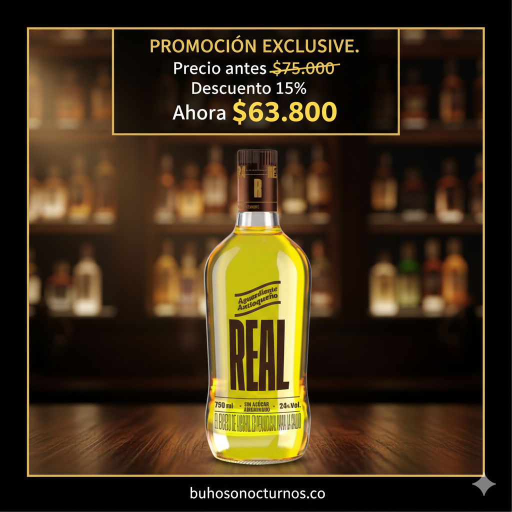 ¡No dejes pasar esta oferta! Compra tu Aguardiente Real Amarillo hoy y siente el sabor de la alegría.